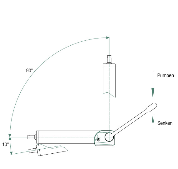 und der Hub erfolgt durch Betätigung des Pedals nach unten.