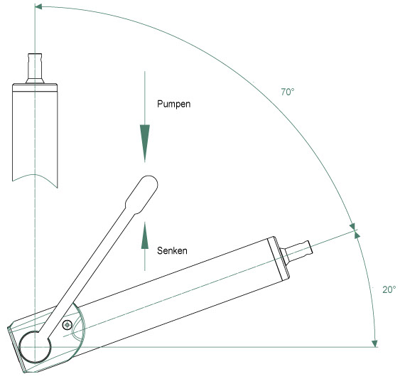 Pedal zeigt bei liegender Hydraulik in Richtung der Kolbenstange